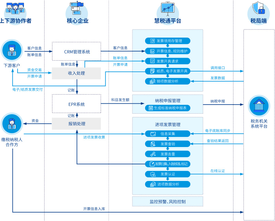 “慧税通”是国信电子票据平台信息服务有限公司(以下简称“国票信息”),基于多年国内大型集团企业、行业标杆客户涉税信息化整体解决方案服务经验,和“发票通(fapiao.com) ”电子发票平台技术优势,打造的企业增值税发票进销项智能管理平台,根据客户需求,提供公有云、私有云、组件接口、系统定制开发等多种产品形式。